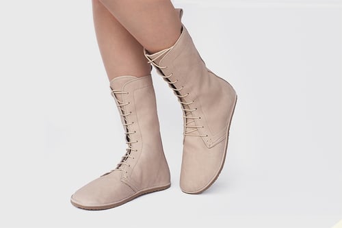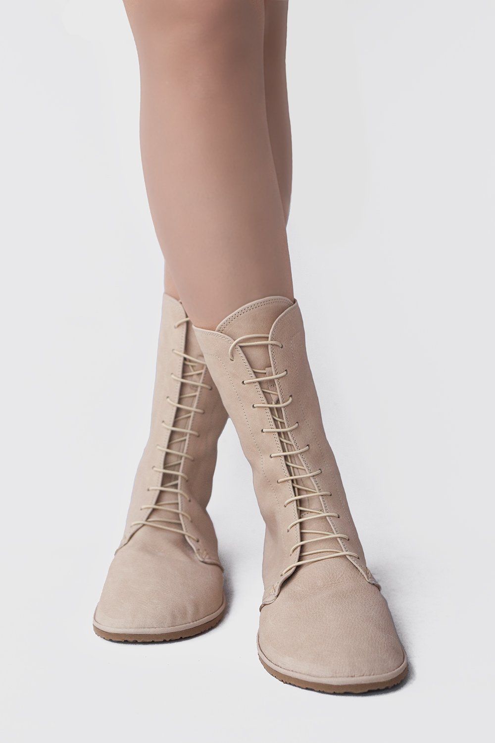 Explore Deco Boots, a mid-calf style in our fawn matte leather. The "Deco" boots feature elastic laces and can be easily slipped on and off. Simple and comfortable for urban strolls or laid-back days, Deco effortlessly combines ease with a touch of sophistication. Enjoy timeless appeal with this casually chic choice.