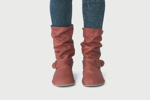 The Slouchy boots made in a soft drapey leather are a flat, lightweight style that is easy to dress up or down. They feature an adjustable instep strap that provides a secure fit which makes them wonderful for long walks.